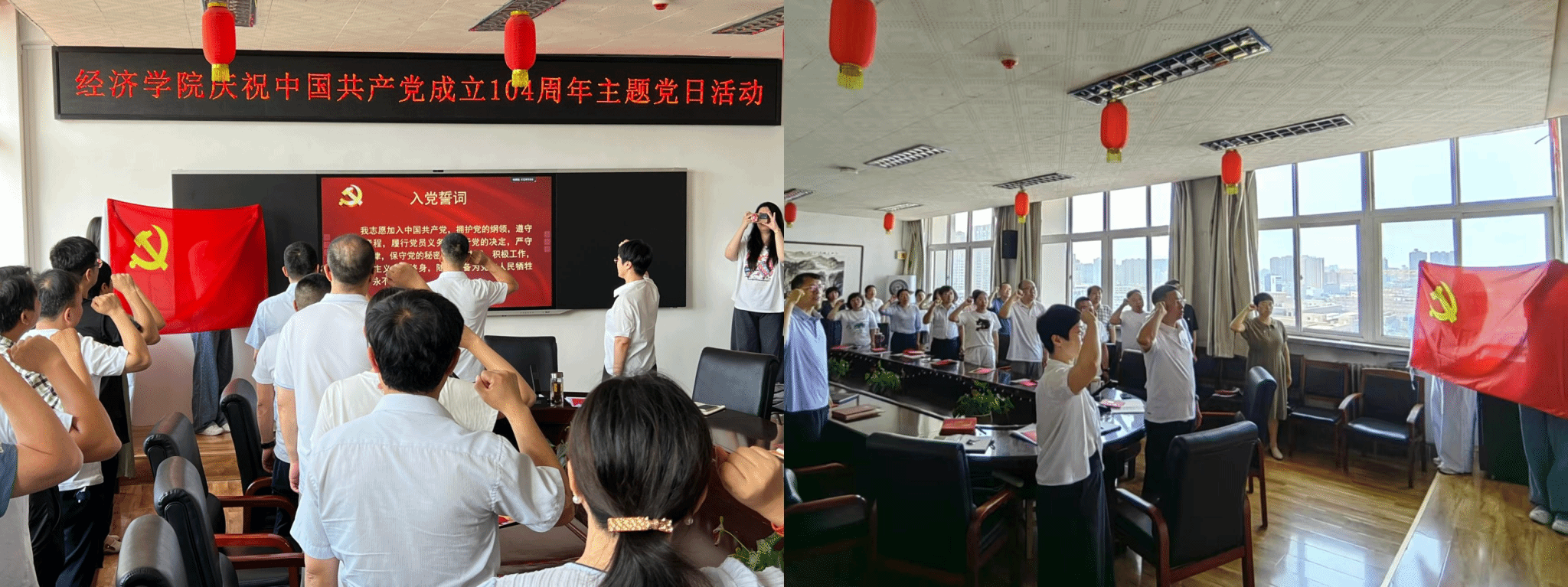 2025年7月1日是伟大的中国共产党成立104周年,为进一步激发党员的爱党爱国热情和踔厉奋发、勇毅前行的干事创业激情,7月1日下午,经济学院党委举行了“重温入党初心,砥砺奋进使命”——庆祝中国共产党成立104周年主题党日活动。