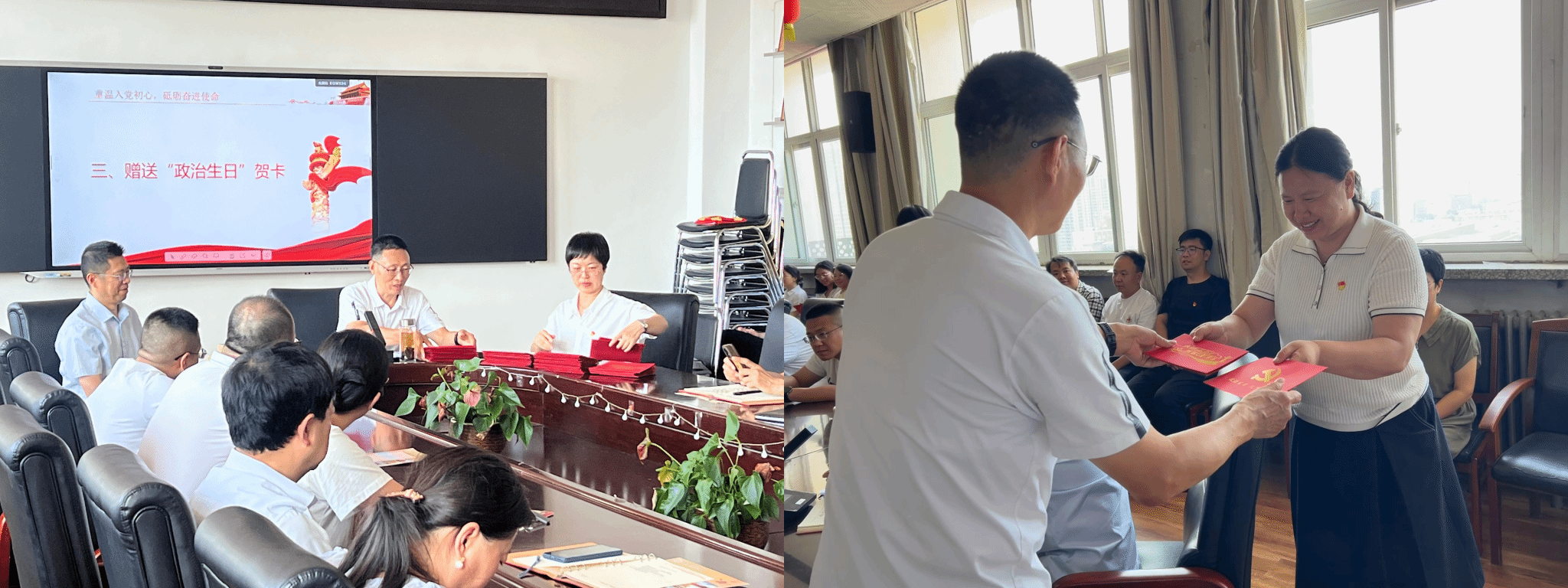 为了开展好此次主题党日活动,学院党委精心为党员们准备了“政治生日”贺卡。当党员们郑重地接过这份特殊的生日礼物时,脸上洋溢着激动与自豪。一张小小的贺卡,不仅是对党员身份的认同,更是对责任与使命的郑重提醒,激励着大家时刻铭记入党誓词,永葆先进本色。