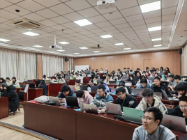 孙晓芳老师作为项目负责人,对实训的宏观经济数据与市场环境进行解读,介绍本期参加实训活动的学生共组成汽车厂商8家、家电厂商16家和钢材厂商8家,活动按虚拟年度循环推进,由学生模拟的厂商通过参与订单竞标、贷款竞标、劳动力竞标、铁精粉竞标等完成生产经营活动,同期可参与组间贷和组间产成品交易等活动,在模拟的宏观经济政策环境下以企业利润为目标做出综合决策。